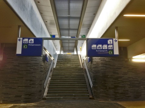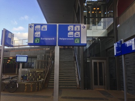 De treinen van Arriva stopten al vijf jaar lang in het Europapark bij een tijdelijke halte een eindje verderop. Het definitieve station ligt direct op de kop van de Boumaboulevard en is zowel vanaf de boulevard als de Helperzoom bereikbaar. Aan de zijde van de Euroborg is eveneens een kiss-and-ride-parkeerplaats gerealiseerd en zijn voorbereidingen gedaan voor een toekomstig busstation. Voorlopig stopt buslijn 8 nog bij de halte Mediacentrale. Daarnaast beschikt het station ook over een bewaakte fietsenstalling, iedere dag geopend van vijf uur ’s ochtends tot twee uur ’s nachts. Bij de fietsenstalling kunnen ook OV-fietsen gehuurd worden. Fietsers kunnen het station zowel vanaf de Boumaboulevard als Helperzoom bereiken. Er loopt een doorgaand fietspad tussen beide wegen onder het station door, het Europapad.